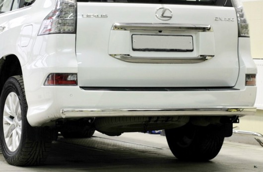 Защита заднего бампера труба предназначена для автомобилей Lexus GX460 от 2013 г.в. Вам не придется подгонять защиту под размеры бампера вашего авто. И с монтажом проблем не возникнет: установка защиты заднего бампера производится в штатные отверстия, а значит, необходимость сверлить кузов отпадает.