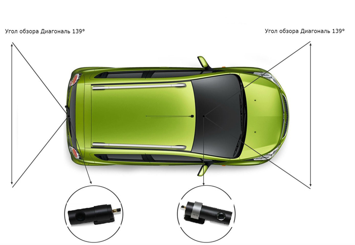 Важной особенностью авторегистратора является его одновременная работа с 2-мя камерами — одна устанавливается спереди, а вторая сзади. Причем каждая из них снимает видео в очень высоком разрешении: главная – в Full HD 1080p, а дополнительная – HD 720p (при скорости 30 к/с), обеспечивая точную передачу всего, что происходит на дороге как спереди, так и позади вас. Угол обзора обеих камер составляет 139°, так что регистратор способен захватить все 4 полосы движения!