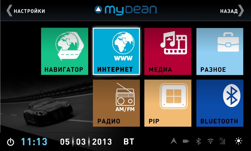 Штатная голова сделана на базе двухъядерного процессора частотой 1 Ггц семейства ARM Cortex с очень высокой производительностью. На ШГУ MyDean 3038 устанавливается операционная система WinCE 6.0 с полностью русифицированным меню. Сенсорный дисплей диагональю 7 дюймов, с разрешением 800х480 и высокой контрастностью позволяет отлично просматривать фото и видео всех основных форматов, включая видео высокой чёткости HD. Также Вы можете просматривать эфирное телевидение, для этого в штатную голову встроен аналоговый ТВ-тюнер.