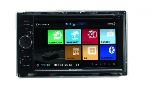 Штатная голова сделана на базе двухъядерного процессора частотой 1 Ггц семейства ARM Cortex с очень высокой производительностью. На ШГУ MyDean 3802 устанавливается операционная система WinCE 6.0 с полностью русифицированным меню. Сенсорный дисплей диагональю 6,2", с разрешением 800х480 и высокой контрастностью позволяет отлично просматривать фото и видео всех основных форматов, включая видео высокой чёткости HD. Также Вы можете просматривать эфирное телевидение, для этого в штатную голову встроен аналоговый ТВ-тюнер.