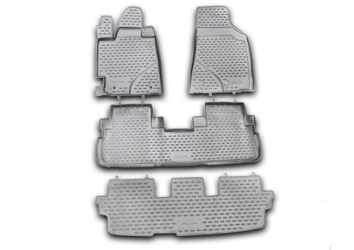 Черные 3D автоковрики в салон Toyota Highlander не только улучшат внешний вид салона вашего автомобиля, но и надежно уберегут его от пыли, грязи и сырости, а значит, защитят кузов от коррозии. Полиуретановые автоковрики разработаны специально для автомобилей Toyota Highlander от 2010 г.в., 3D.