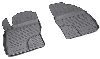 Полиуретановые коврики для автомобиля гладкие, приятные и не пропускают влагу. Черный цвет универсален и подойдет любому авто. В комплекте вы получите 2 коврика в салон автомобиля.