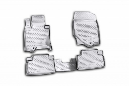 Изготовлены из качественного материала. Полиуретановые автомобильные коврики для салона Инфинити ФХ50 произведены из высококачественного материала, который держит форму и не пачкает обувь. К тому же, этот материал очень прочный (его, к примеру, не получится проткнуть каблуком).