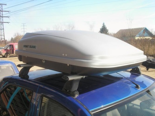 Обратите внимание! Сначала необходимо закрепить на крыше поперечины багажника, а потом уже на них ставится бокс. Если у вас нет поперечников, вы можете подобрать их для своей марки авто здесь.