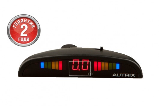 Парковочный радар AUTRIX F-257 оснащен цветным ЖК-дисплеем со встроенным звуковым бипером. Дисплей можно установить в любом удобном месте в салоне. В центре дисплея отображается информация о направлении препятствия и расстояние до него (в метрах), а боковые цветные светодиоды сообщают о наличии препятствия слева или справа автомобиля.