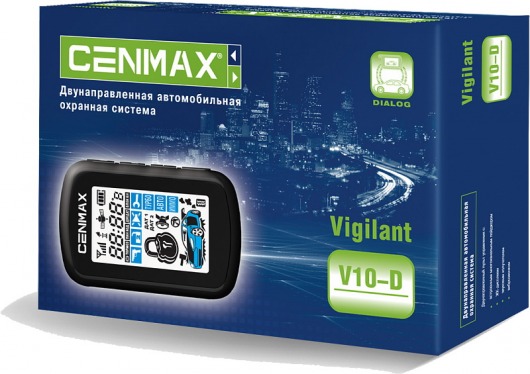 CENMAX Vigilant V10-D — это современная автомобильная сигнализация с двунаправленным пультом управления и режимом энергосбережения брелоков, которая отлично охраняет и защищает капот, внутрисалонное пространство, двери и багажник вашего авто. Кроме того, сигнализация CENMAX Vigilant V10-D обладает широким набором полезных режимов и функций, среди которых есть режим режим иммобилайзера, турботаймера,  охраны с заведенным двигателем, защиты от разбойного нападения Anti Hi-jack и другие не менее полезные возможности.