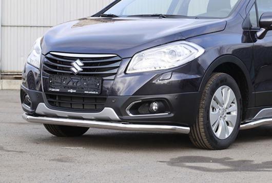 Защита переднего бампера труба предназначена для автомобилей Suzuki SX4 New от 2014 г.в. Вам не придется подгонять защиту под размеры бампера вашего авто. И с монтажом проблем не возникнет: установка защиты переднего бампера производится в штатные отверстия, а значит, необходимость сверлить кузов отпадает.