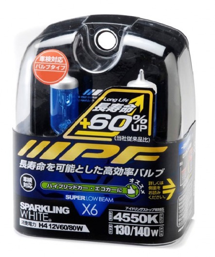 IPF 6X45 SPARKLING WHITE — это газонаполненная лампа с цоколем Н4, которая отличается увеличенным сроком службы (+60%). Почти весь газ, который находится в колбе автолампы — это xenon. Поэтому нить накала лампочки тоньше и длиннее, чем у обычных галогенок. Кроме того, в колбе создается высокое давление, благодаря чему обеспечивается высокая яркость светового потока.