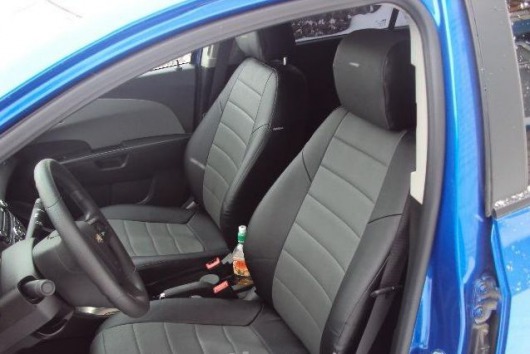 Вопросы и отзывы про Чехлы автомобильные для Chevrolet Aveo II, седан от 12 г.в. (черно-серые, экокожа)