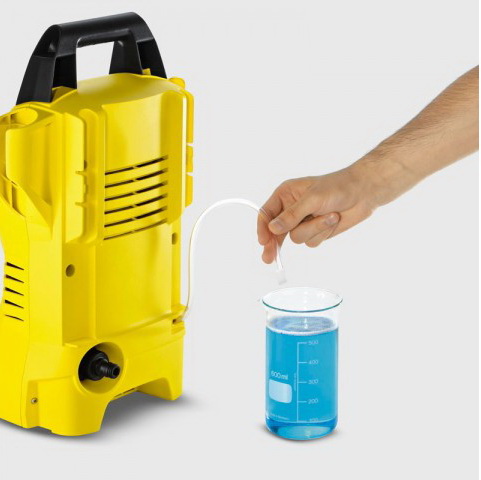 • Автомобильная минимойка Karcher K 2 Car оснащена шлангом с фильтром для моющего средства. Так, средство всасывается из бака и образует стойкую пену. Благодаря этому процесс мойки происходит максимально качественно и комфортно.