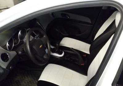 Вопросы и отзывы про Чехлы автомобильные для Chevrolet Cruze, седан/хэтчбек/универсал (черно-белые, экокожа)