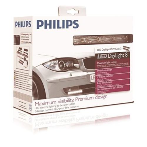 Дневные ходовые огни (DRL) Philips DayLight 8 очень просто и незатейливо подключаются к бортовой сети вашего автомобиля. Это, так называемая, система  plug & play (включай и работай). А поскольку подключение осуществляется при помощи специальных изолированных фишек, безопасность использования, да и самого подключения значительно возрастает. Рассеиватели фар выполнены из прочного поликарбоната, что не только придает надежность и долговечность фарам, но и стильный, современный вид вашему автомобилю.
