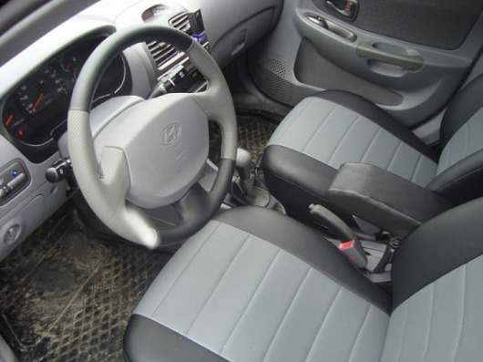 Вопросы и отзывы про Чехлы автомобильные для Hyundai Accent, седан от 08 г.в. (черно-светло-серые, экокожа)