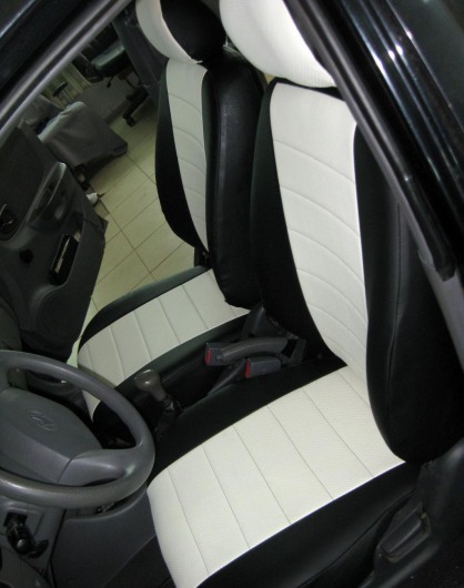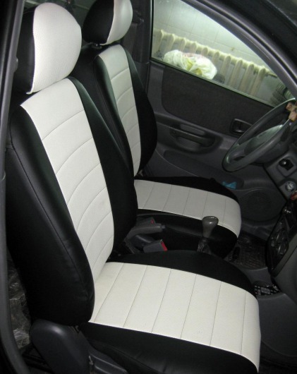 Вопросы и отзывы про Чехлы автомобильные для Hyundai Accent, седан от 08 г.в. (черно-белые, экокожа)