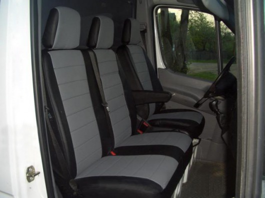 Чехлы автомобильные для Mercedes Sprinter, 3 места (черно-темно-серые, экокожа)