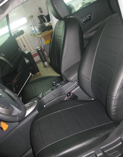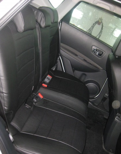 Вопросы и отзывы про Чехлы автомобильные для Nissan Qashqai, 5 мест (черные, экокожа)