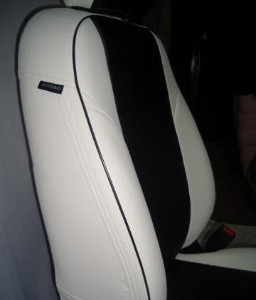 Чехлы автомобильные для Mitsubishi L-200 от 06 г.в. (бело-черные, экокожа)