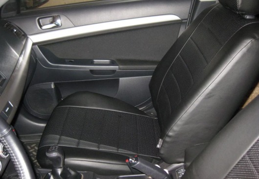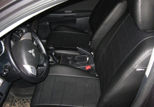 Вопросы и отзывы про Чехлы автомобильные для Mitsubishi Lancer X, седан, от 07 г.в. (черные, экокожа)