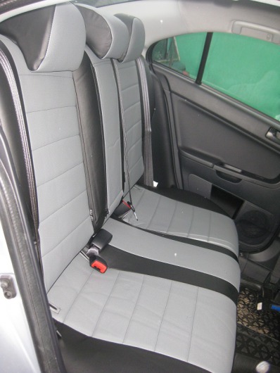 Вопросы и отзывы про Чехлы автомобильные для Mitsubishi Lancer X, седан, от 07 г.в. (черно-светло-серые, экокожа)