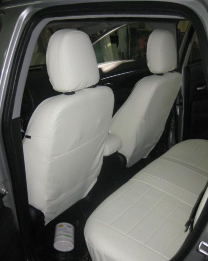 Вопросы и отзывы про Чехлы автомобильные для Mitsubishi Lancer X, хэтчбек, 2 л., от 07 г.в. (белые, экокожа)