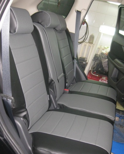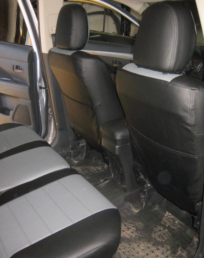 Вопросы и отзывы про Чехлы автомобильные для Mitsubishi Outlander III от 12 г.в. (черно-светло-серые, экокожа)