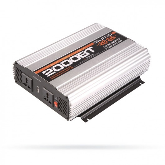 Автомобильный преобразователь напряжения (инвертор) QUMO 12-220В 2000Вт преобразует 12В постоянного тока в 220В переменного. Инвертор напряжения имеет мощность в 2000Вт. Вы получаете в автомобиле обычную домашнюю розетку на 220В, просто подключив устройство к клеммам аккумулятора. Кроме того, в автомобильном инверторе QUMO 12-220 2000Вт имеется выход USB  для работы и зарядки портативных устройств.