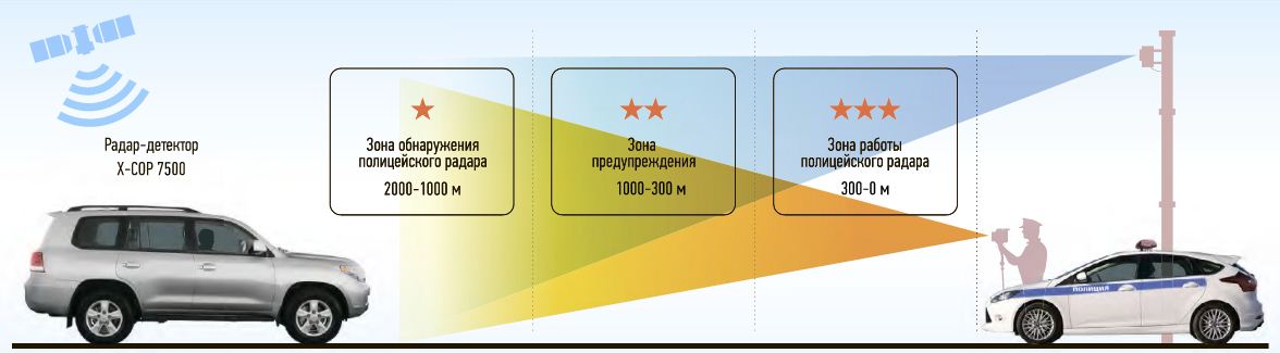 Автомобильный радар-детектор Neoline X-COP 7500 точно и быстро улавливает сигналы полицейских радаров в диапазонах Х/К/Ка/360°Laser, а также определяет излучение радаров «Стрелка». Кроме того, X-COP 7500 определяет стандартные радарные комплексы, мобильные засады ДПС, маломощные и лазерные радары, такие как «Кордон», «Крис», «Бинар», «Беркут», «Визир», «Робот», «Арена» и т.д.