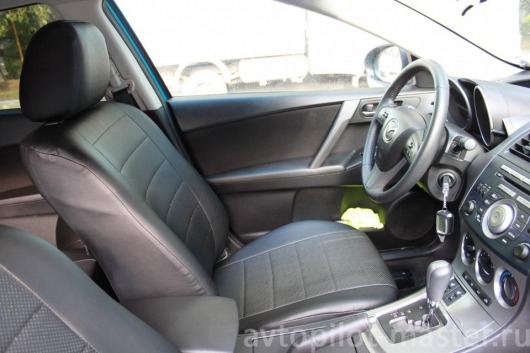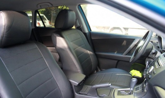 Чехлы автомобильные для Mazda 3, седан/хэтчбек 09-13 г.в. (черные, экокожа)