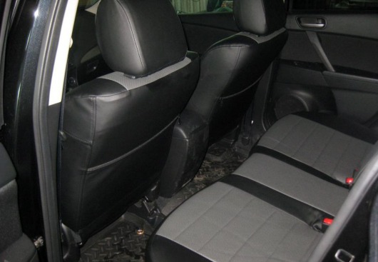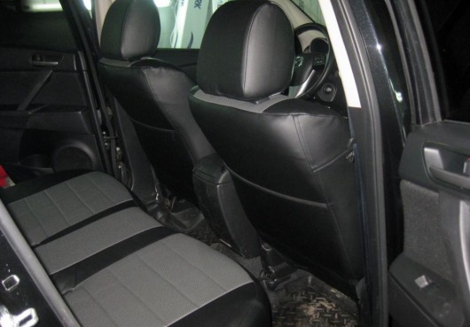 Вопросы и отзывы про Чехлы автомобильные для Mazda 3 от 13 г.в. (черно-темно-серые, экокожа)