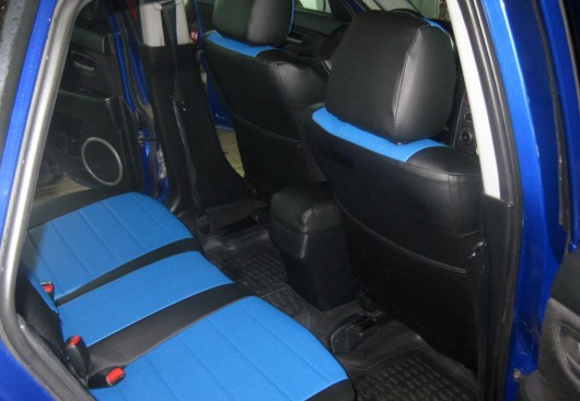 Вопросы и отзывы про Чехлы автомобильные для Mazda 3 от 13 г.в. (черно-синие, экокожа)