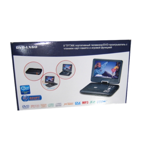 Портативный ЖК TFT DVD плеер с TV-тюнером SOUPT DVD-LX60 имеет 9,5-дюймовый монитор весьма неплохого разрешения, благодаря чему вы сможете без проблем смотреть любимые фильмы, и даже играть в видео-игры (джойстик в комплекте). Встроенный цифровой тюнер даст возможность просматривать любимые телепередачи или ток-шоу.