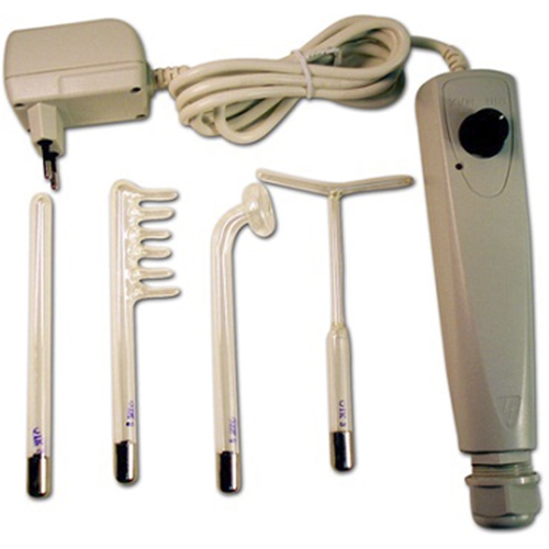 • прямой электрод предназначен для лечения внутриполостных заболеваний (наружного слухового прохода, полости носа и др.) и точечного воздействия на небольшие участки кожи (лечение небольших ранок, язвочек, угрей и т.д.);