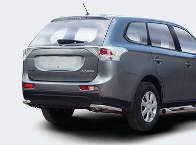 Уголки на задний бампер Mitsubishi Outlander XL защищают задний бампер автомобиля от различных механических повреждений при столкновениях на дороге и неудачных парковках. А кроме этого, защита заднего бампера для Митсубиси Отулэндер XL — это дополнительная деталь тюнинга.
