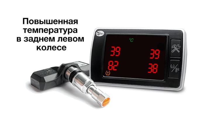 Оповещение звуковым и световым сигналами. Когда давление и температура одного из колес выходит за установленные вами пределы, система предупреждает вас звуковым сигналом, а также подсвечивает цифру проблемного колеса на экране. Принцип работы: