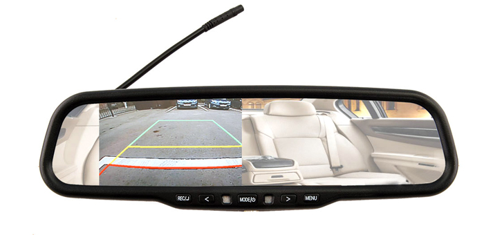 • Для удобной парковки к зеркалу с видеорегистратором и монитором можно подключить камеру заднего вида — картинка с нее будет выводиться на монитор, встроенный в зеркало. Видеовход стандарта CVBS позволит подключить к устройству любую парковочную камеру.