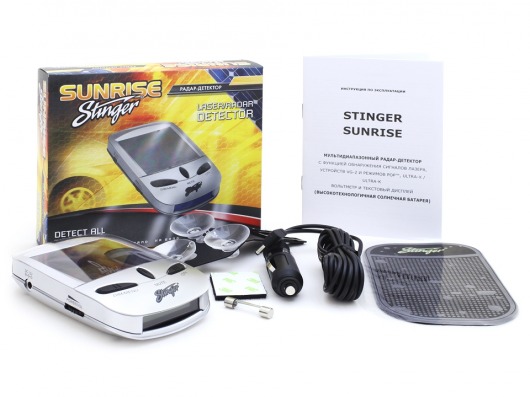 Радар-детектор Stinger Sunrise улавливает сигналы полицейских радаров в диапазонах X, K, Ka, сигналы импульсных радаров в диапазонах Ultra-X и ULtra-K, а так же лазерные сигналы в радиусе 360 градусов. Устройство ориентировано на использование на территории России и стран СНГ, но с успехом может использоваться и в тех странах, где существует запрет на подобную технику, поскольку имеет встроенную защиту от обнаружения полицейскими пеленгаторами типа VG-2.