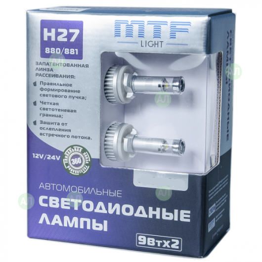 Комплект светодиодных ламп MTF Light под цоколь H27 (880, 881) (белый свет)