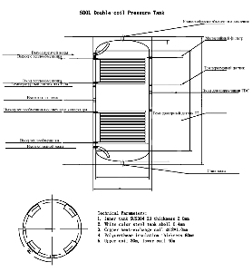 Бак-аккумулятор 500L - бак с объемом воды, достаточным для отопления значительных размеров дома. Оснащен двумя теплообменниками, клапаном сброса избыточного давления и магнезийным стержнем для очистки воды. Внутренний бак изготовлен из SUS304-2B нержавеющей стали толщиной 2мм. Внешний бак - из крашеной стали толщиной 0,4 мм. Максимальное давление - 6 МПа. По длине верхний теплообменник составляет 30 м, нижний - 40м. В диаметре медная спираль теплообменника составляет 12 мм, ее толщина - 1мм. Теплоизоляция обеспечивается за счет полиуретановой пены толщиной 60 мм. Гарантия на бак-аккумулятор 500L- 5 лет, послегарантийное обслуживание