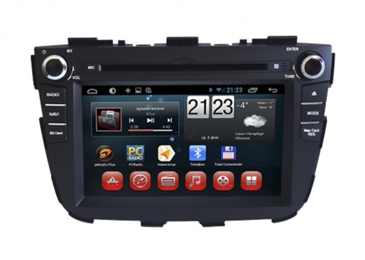 Штатное головное мультимедийное устройство позволяет прослушивать аудиофайлы различных форматов, просматривать видео (в том числе в HD-формате) и фотографии как с внутренней памяти устройства (8 Гб), так и с внешних носителей и SD карт памяти. Вы также можете слушать аналоговое или интернет-радио или смотреть видео онлайн. Или подключить цифровой ТВ-тюнер, чтобы смотреть цифровые каналы прямо на экране устройства. А еще у вас есть возможность подключить DVD-привод и смотреть фильмы и управлять DVD-меню прямо с сенсорного экрана магнитолы.