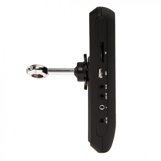 разъемы USB и SD для подключения карт памяти; AV in, AV out для подключения источника видео и звука