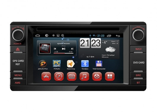 Штатное головное мультимедийное устройство позволяет прослушивать аудиофайлы различных форматов, просматривать видео (в том числе в HD-формате) и фотографии как с внутренней памяти устройства (8 Гб), так и с внешних носителей и SD карт памяти. Вы также можете слушать аналоговое или интернет-радио или смотреть видео онлайн. Или подключить цифровой ТВ-тюнер, чтобы смотреть цифровые каналы прямо на экране устройства. А еще у вас есть возможность подключить DVD-привод и смотреть фильмы и управлять DVD-меню прямо с сенсорного экрана магнитолы.