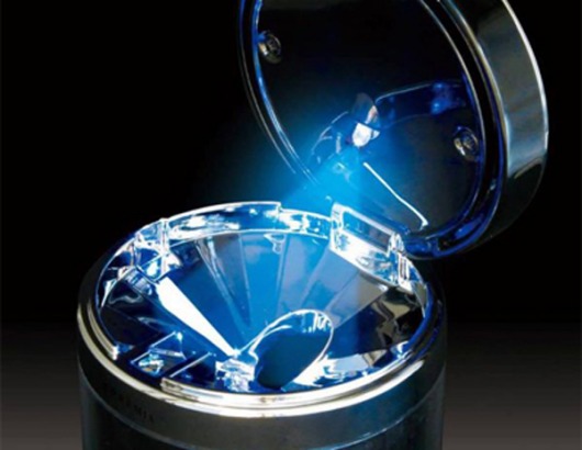 Пепельница с подсветкой FE-24 - оригинальная компактная пепельница для крепления в подстаканник. Подсветка приятного голубого цвета. Заряд подсветки осуществляется через солнечную панель. Внутри в пепельнице предусмотрен держатель для сигареты, что подарит Вам дополнительное удобство при курении. Габариты: высота - 110 мм, диаметр - 70 мм.