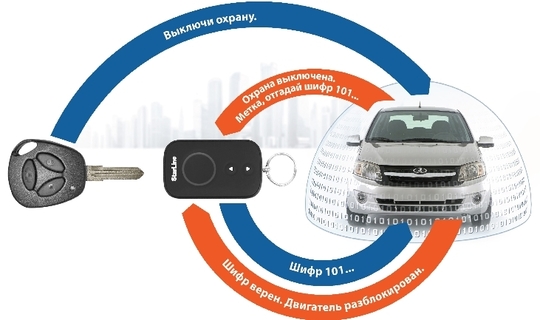 • Благодаря режиму SUPER SLAVE вы можете управлять охраной автомобиля на основе диалоговой авторизации с помощью штатного брелока. В роли метки здесь будет выступать дополнительный миниатюрный брелок StarLine. Диалоговый код управления с индивидуальными ключами шифрования 128 бит гарантирует надежную защиту от любых попыток взлома.