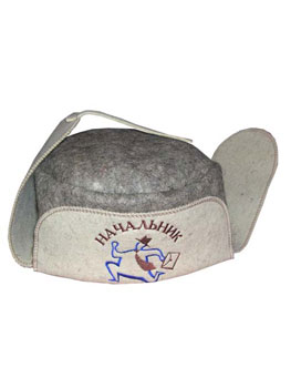 Шапка-ушанка для бани "Начальник" - не только колоритный акссесуар для любого банщика, но и полезная вещь в парной.  Банная шапка выполнена из войлока в оригинальном дизайне шапки-ушанки с надписью "Начальник" и не только убережет вашу голову и волосы от горячего воздуха в парной, но и подчеркнет ваше чувство юмора.
