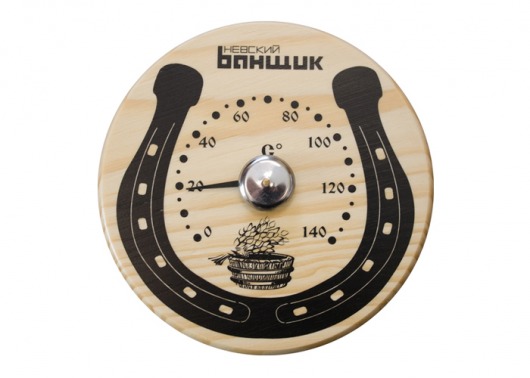 Термометр "Невский банщик" предназначен для измерения температуры в парной. Этот стилизованный градусник для бани в деревянном корпусе в виде подковы на счастье станет хорошим подарком друзьям и знакомым, у которых есть своя баня или сауна. Изготовлен из экологически чистых материалов, не содержит ртути.