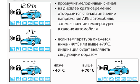 Принцип управления брелоков интуитивно понятен, поскольку все пиктограммы выполнены на русском языке. Светодиодная подсветка позволит использовать брелок даже в кромешной темноте - информация считывается легко, без необходимости напрягать зрение. Код шифрования используется не только в основном, но и в дополнительном брелоке, что обеспечивает надежную защиту всей системы.