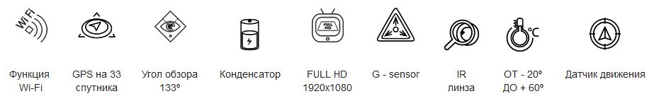 светодиодный индикатор записи, GPS LED, Wi-Fi LED, передний светодиодный индикатор безопасности