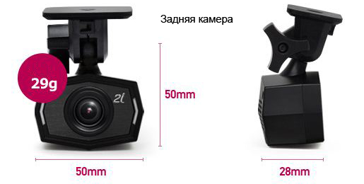 Основная камера авторегистратора скрытно крепится за салонным зеркалом (на кронштейн или на 2-сторонний скотч), а дополнительная подключается к ней с помощью 7-метрового провода и устанавливается на заднем стекле. Обе камеры стильные, легкие и компактные (задняя камера, к примеру, весит всего 29 г). И при этом они совершенно незаметны снаружи салона — а значит, можно не беспокоиться о том, что их попытаются украсть.