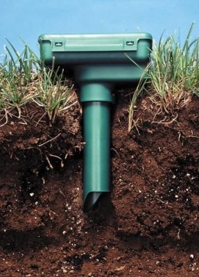 • для большей эффективности следует установить отпугиватель в уже проделанный кротом ход, слегка расширив отверстие