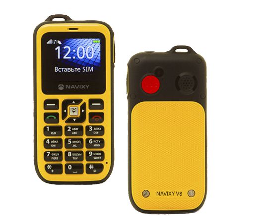 NAVIXY V8 — это, можно сказать, классический мобильный телефон, в котором есть все самое необходимое: цветной экран, удобная записная книжка, журнал вызовов, возможность приема и отправки SMS-сообщений. При этом сотовый телефон отличается крупными кнопками и пылевлагозащищенным корпусом, что очень удобно для пожилых людей и маленьких детей.